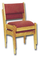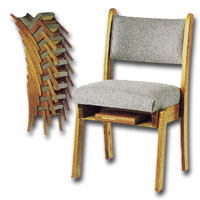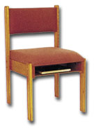 Wood stacking choir chairs are Oak framed and finished, some with a bookracks underneath the seat and other using a ganging bookrack between chairs. All our wood framed chairs are time tested using a leg fastening process to the Oak framed seat body with double dowels and double strews.