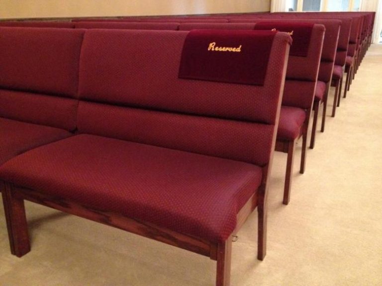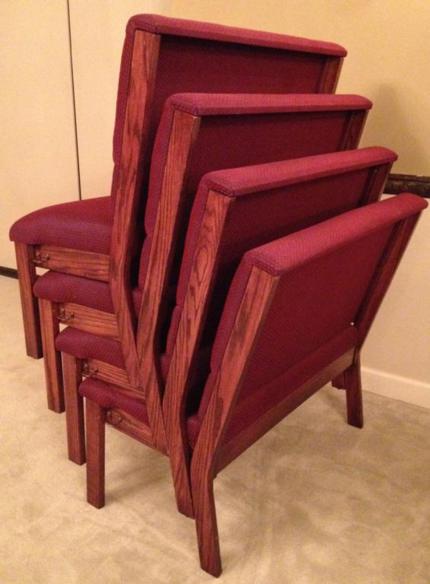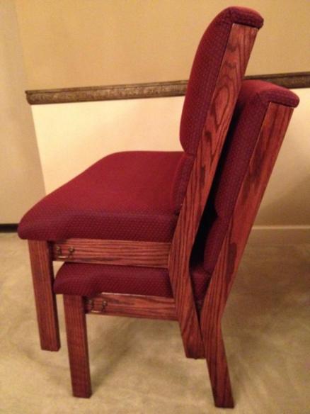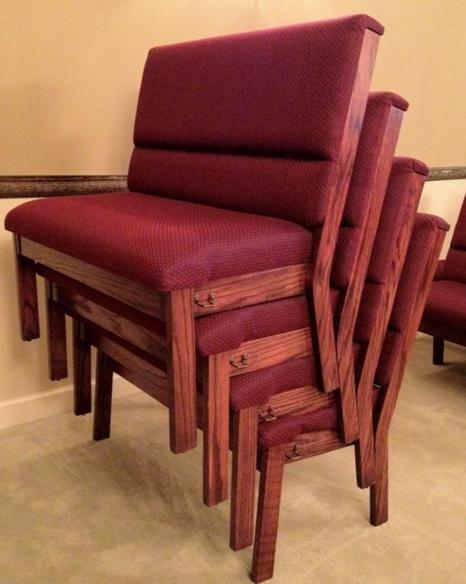 The “Stacker” seating option provides flexibility that many funeral homes desire allowing the chapel area to function also as another viewing area. This seating is most comfortable, yet can be easily moved and stacked as shown. When placed as a pew like seating each section gangs allowing several sections to accommodate continuous seating much like a pew.
