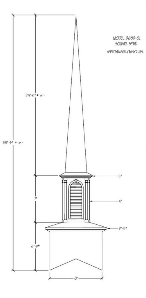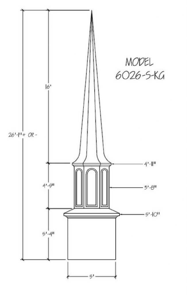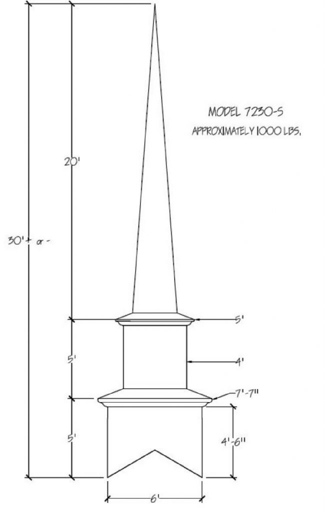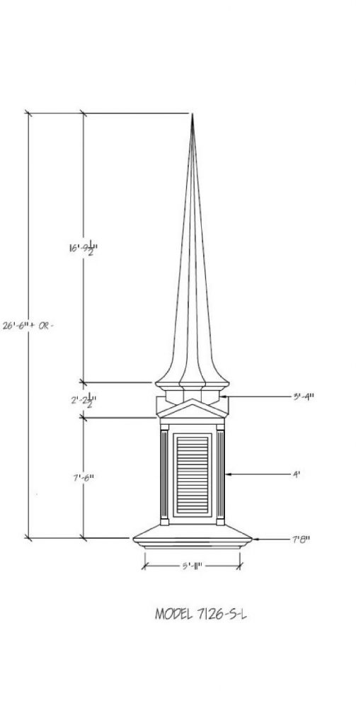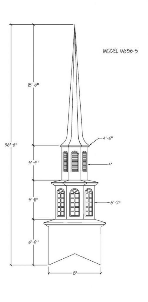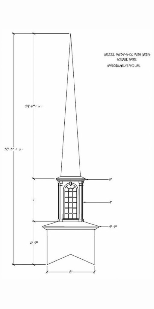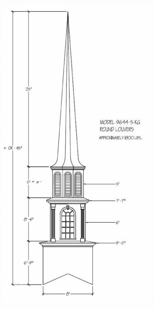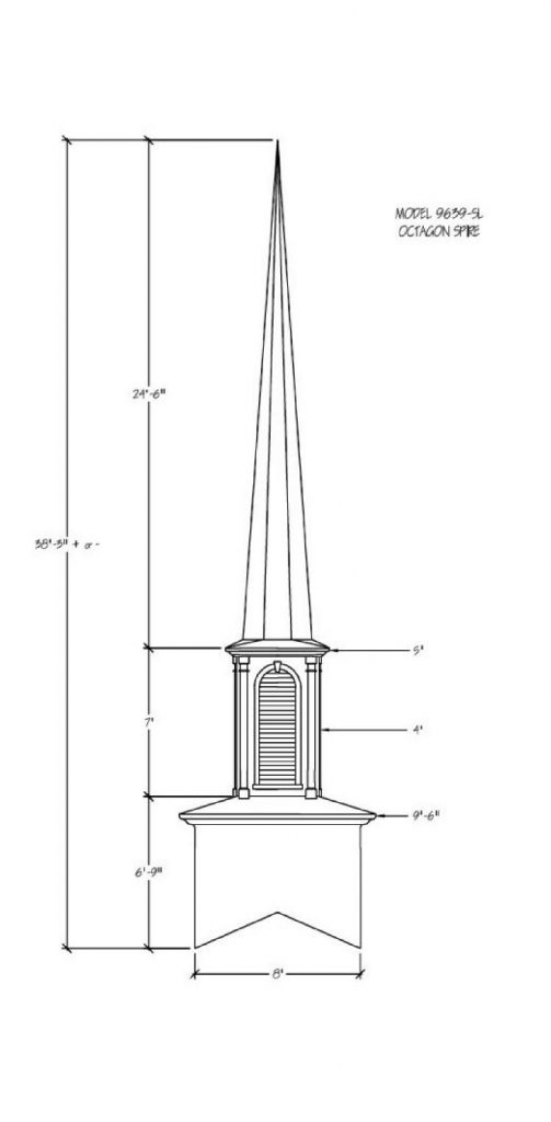 Often times the first indication of a church is seen from afar… the Steeple being the first sight of your facility. Around the world a Steeple is the distinctive sign indicating a place of worship and dignity. We can help you find the steeple best suited for you plus completing the job with delivery and installation. Our steeples range from 15′ to 60′ and being made with Fiberglass can endure the weather elements for many years. Notice a few of our many selections of steeple styles.