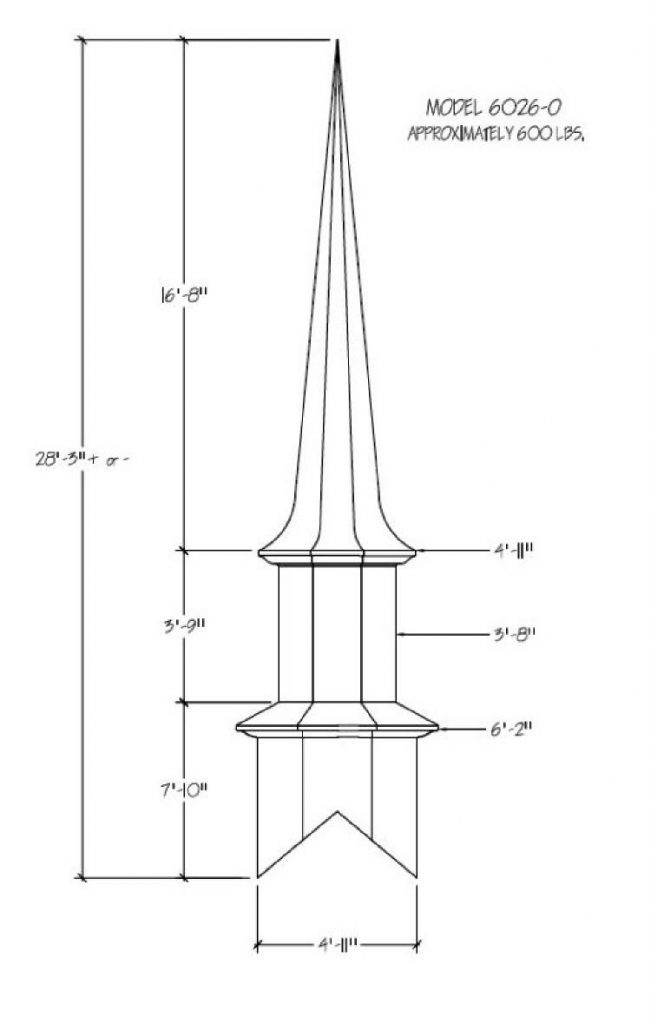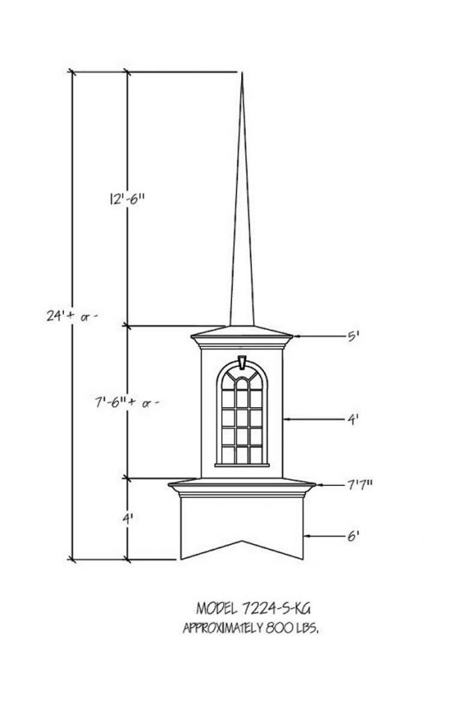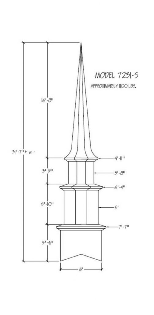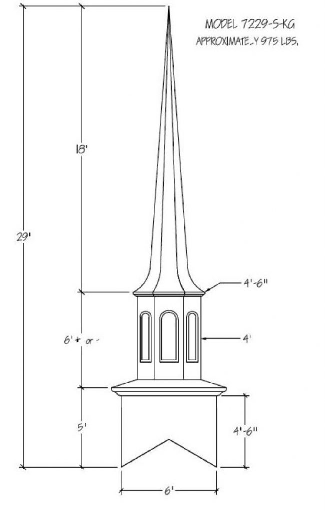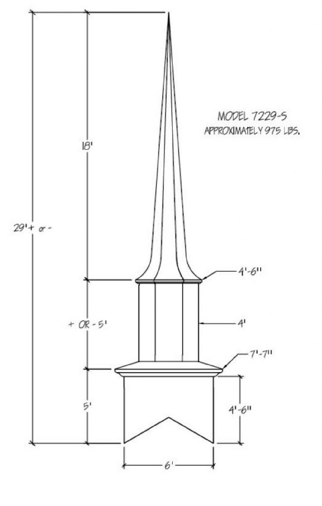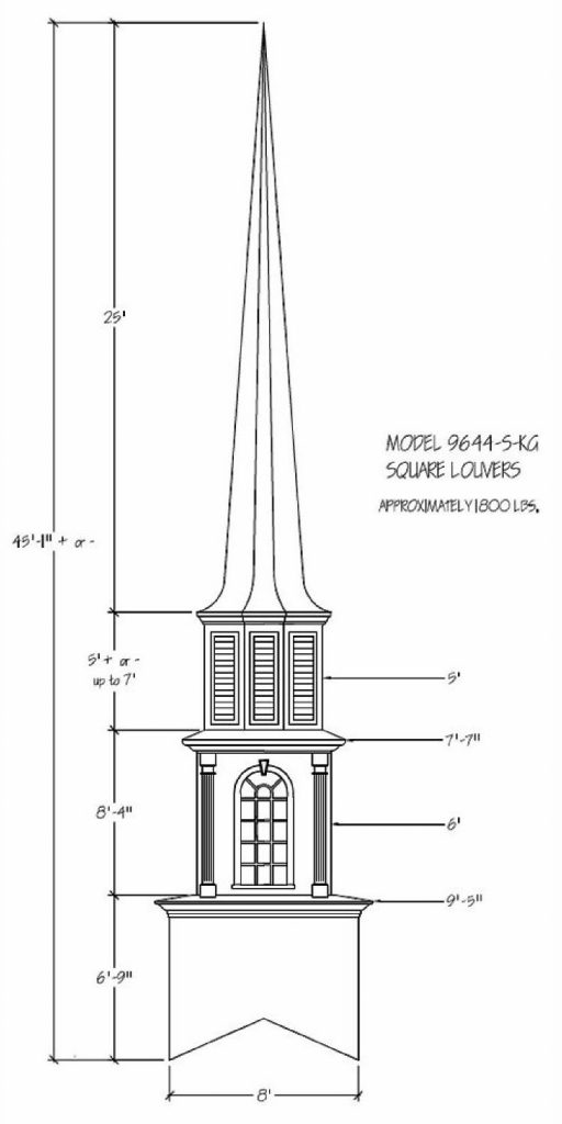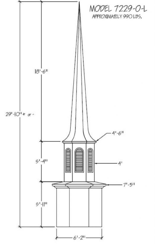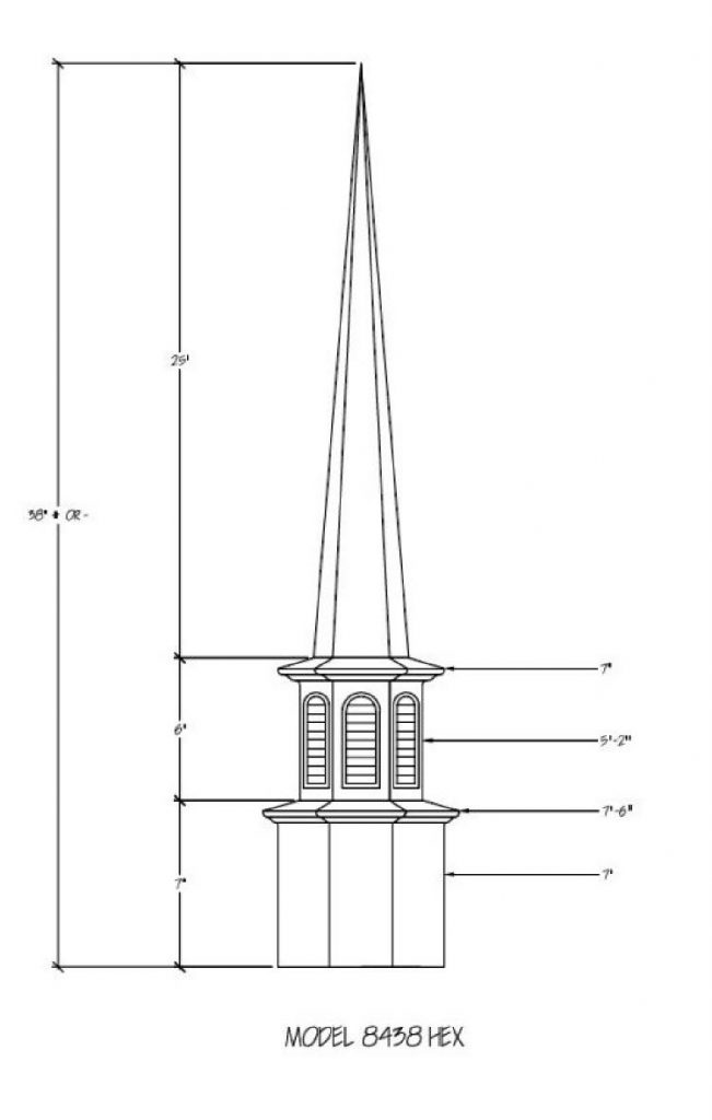 Often times the first indication of a church is seen from afar… the Steeple being the first sight of your facility. Around the world a Steeple is the distinctive sign indicating a place of worship and dignity. We can help you find the steeple best suited for you plus completing the job with delivery and installation. Our steeples range from 15′ to 60′ and being made with Fiberglass can endure the weather elements for many years. Notice a few of our many selections of steeple styles.