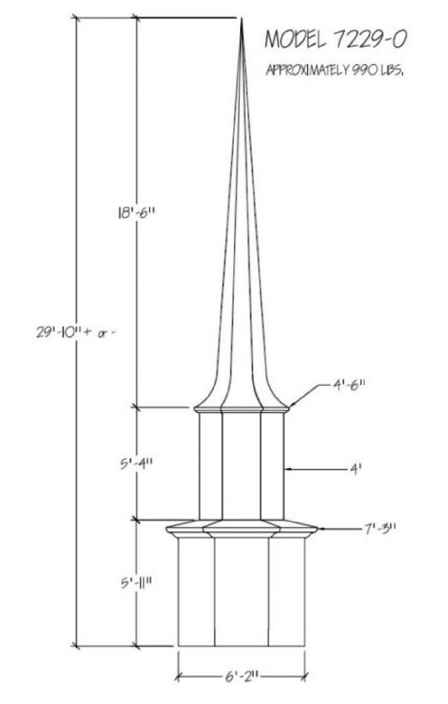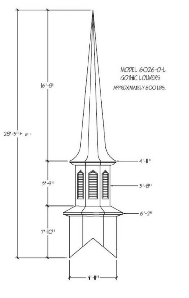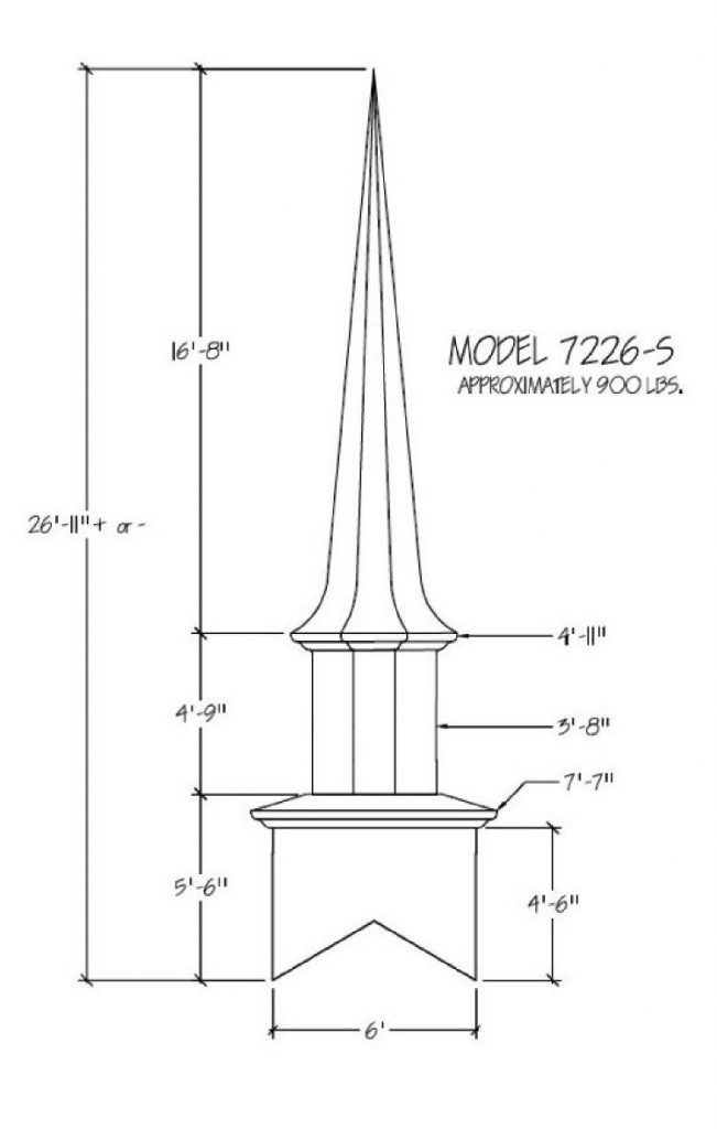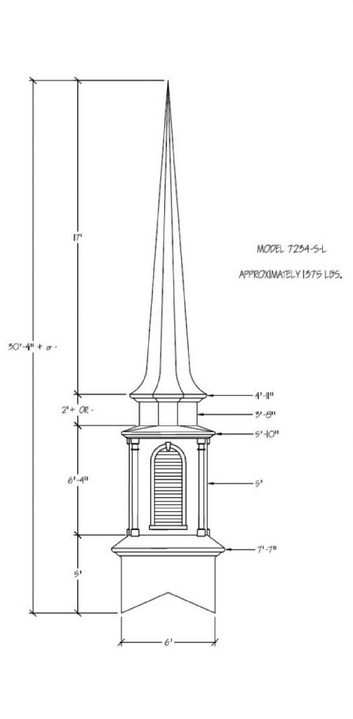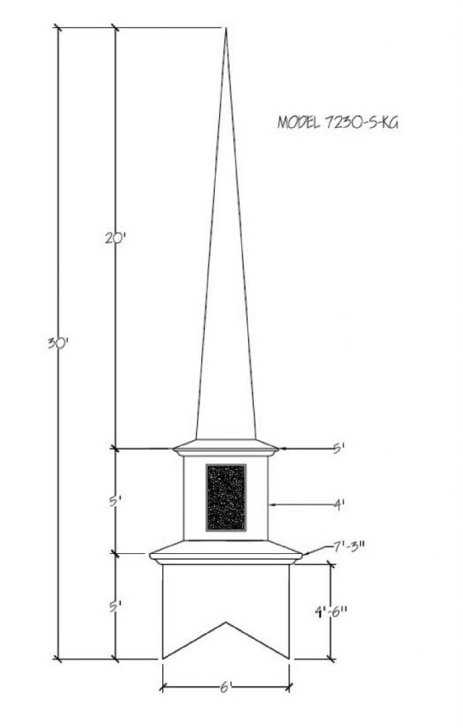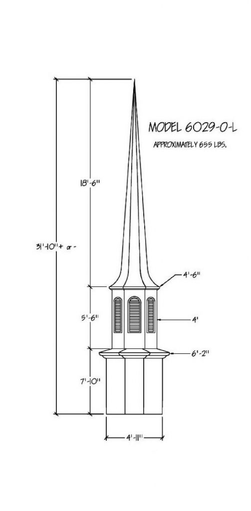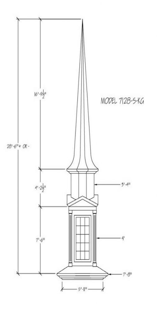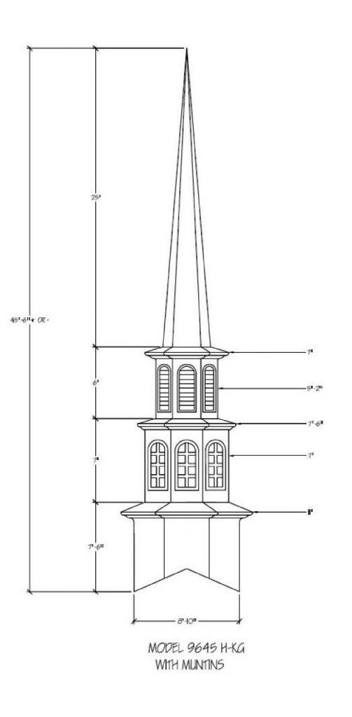 Often times the first indication of a church is seen from afar… the Steeple being the first sight of your facility. Around the world a Steeple is the distinctive sign indicating a place of worship and dignity. We can help you find the steeple best suited for you plus completing the job with delivery and installation. Our steeples range from 15′ to 60′ and being made with Fiberglass can endure the weather elements for many years. Notice a few of our many selections of steeple styles.